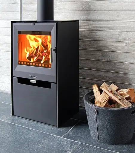 Der Aduro 14 kombiniert Stahl und Gusseisen in einem strengen, schlichten und kubischen Design. Die glatten Flächen und markanten Ecken, die sich mithilfe des Stahls erreichen lassen, bilden einen spannenden Kontrast zu der urigen, rustikalen Gusseisentür. Um eine harmonische, klare Optik sicherzustellen, wurde ein geräumiges Holzfach mit Tür integriert, das zur Aufbewahrung von Kaminzubehör ideal ist. Der Ofen besticht darüber hinaus durch seine geräumige Brennkammer, seine einfache Bedienung und die hervorragende Brennleistung.