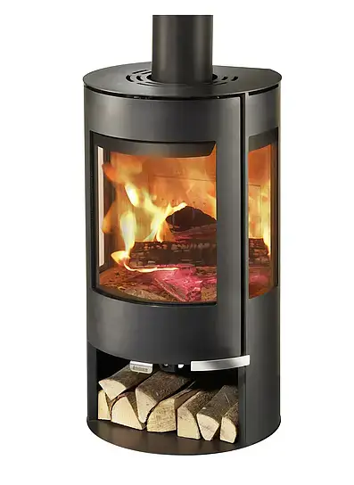 Aduro 9.6 ist ein runder Kaminofen im skandinavischen Design mit drei Glasscheiben, mit denen Sie die Flammen sowohl von den Seiten betrachten können. Der Ofen ist so konzipiert, dass die maximale Sicht auf die Flammen im Mittelpunkt steht. Deshalb macht die Brennkammer einen großen Teil der Gesamthöhe des Ofens von 90 cm aus. Darüber hinaus sorgt eine effektive Scheibenreinigung dafür, dass das Front- und Seitenglas nicht rußig wird. Unter der Brennkammer verfügt der Aduro 9.6 über ein Ablagefach zur praktischen und dekorativen Aufbewahrung von Brennholz.